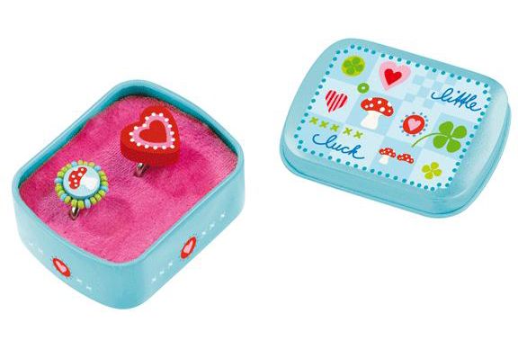 Hearts, toadstools, beads, a teeny tiny tin with hot pink lining – what’s not to love about these wooden Haba Heart rings? £5.95 for set of two, Lula Sapphire.