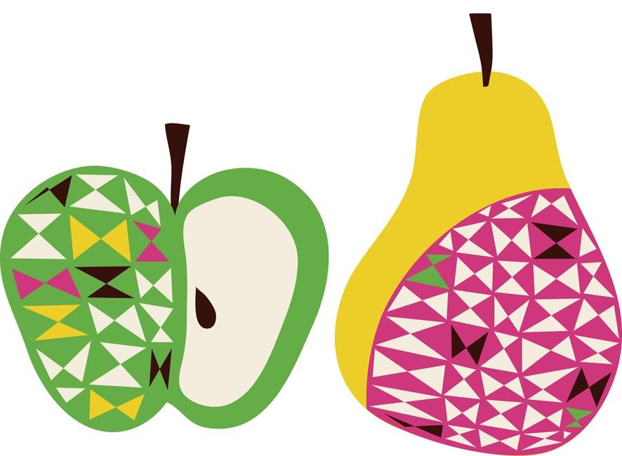 Get two for the price of one with these, frankly amazing, fabric apple & pear decals from BG favourite Helen Dardik, £39.99. Funky and fruity.