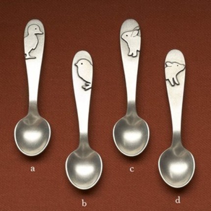 As you know, we don’t much go in for tradition here at BG, but if you do have an old-school christening to go to you could do much worse than give one of these baby spoons, from US-based Beehive Kitchenware, as a time-honoured pressie with a homespun twist. Hand cast in lead-free pewter, they are decorated with a duck, chick, bunny or pig motif, front and back, and come gift-boxed and ready to go for $22 each (plus $14.50 p&p to the UK). Have a browse around the other goodies in the shop as p&p for a second item is just $1. I’m lusting after these bird cheese markers, $52, for posh dinner parties.