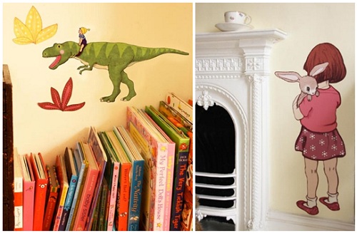 Alongside classic Belle & Boo pictures there are new images including the hot air balloons (as above) and dinosaurs (as below). There is a range of stickers to choose from with single images and sets to create larger scenes. Prices are from £14.99 right up to £79.99 depending on the set and size. You can buy them from both Belle & Boo and Chocovenyl.