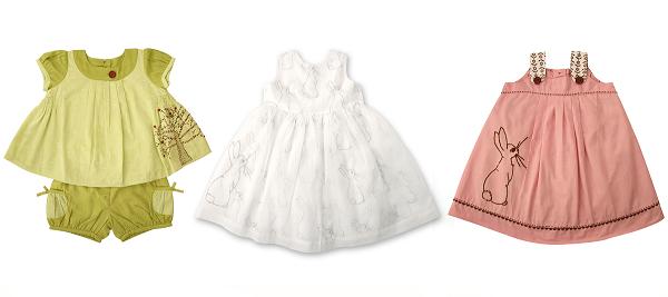 Belle & Boo has captured the collective imagination around the world with childhood illustrations dripping with nostalgia. Their capsule girls’ clothing collection for Spring Summer 2010 is the clothing of Belle and her friends brought to life. The collection at first glance is very traditional but on closer consideration it is also contemporary. The Spring Blouse and Spring Shorts (above left) tap into the continuing trend for tailored shorts and would look darling with wool tights on colder days. The Freedom Dress (above centre) is closely modelled on the dress worn in Lola Freedom. It is made from organdy and has Boo embroidered on the right hand side. The full skirt is returning to vogue and we spotted plenty of examples at the trade shows this Winter. The Boo Pinafore Dress (above right) is a simple pink twill which again features and embroidered Boo. I love the ric rac detailing around the hem. Each of the items is lined in coordinating fabric printed with the Boo design. All items are available in sizes 12 months – 5 years and prices are £20 – £39.