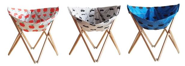 The Petit Chair is an instant design classic in my book. It has elegant wooden legs positioned to give a firm base as well as to be pleasing to the eye. The canvass hammock-like seat is features one of three Bobo prints and envelopes the sitter. Gorgeous from the bottom up.