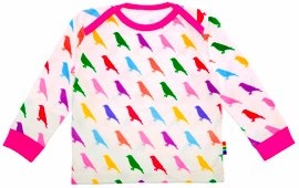 Whilst I’m a mega fan of Scandinavian childrenswear labels as they keep clothing exciting with great prints and patterns, in eclectic colourways, British label Brights and Stripes can certainly hold their own. Their multi-bird print is hot and is available in pink, blue, and brown trim in both leggings and tops. Sizes start from 6-12 months up to 18-24 months at Peter and Jane with tops £16.99 and leggings £15.99