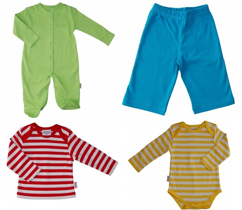 The capsule collection consists of hats, sleepsuits, trousers, long sleeved tees and vests all for babies in sizes from newborn to 1-2 depending on the item. They are made from super soft Turkish organic cotton which is GOTS certified and are coloured using organic dyes. Each item is available in green, blue, red, yellow, orange and pink each one of them a fruity fresh shade.