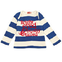 I’m not normally a fan of slogan wear for babies, but this ‘bright-eyed and bushy tailed’ t-shirt caught my eye. I love the combination of the jaunty stripes, and the lettering over the top. Was it just my mother who constantly used this expression when I was small, or is this a generic parent-thing? Anyway, it’s available in sizes 6 months, and 12 months (18 months is sold out) , and is £15.