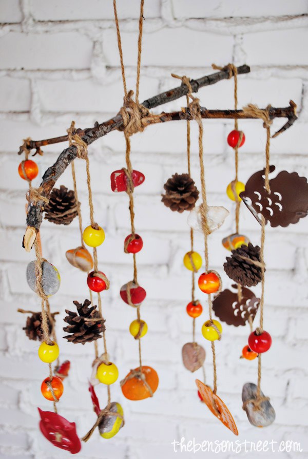 The Fall Treasure Wind Chimes / Mobile from The Benson Street is a great way to use up all those treasures in one big hit. Pop over to her page to see instructions. I love this, simple and effective.