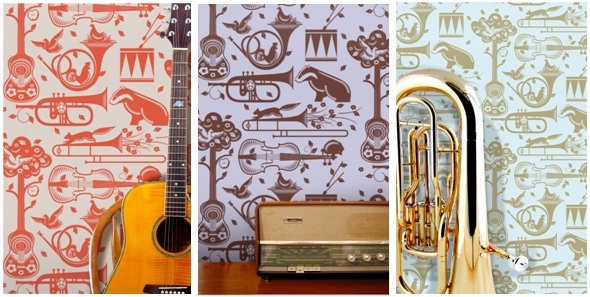 We adore Mini Moderns and when we saw their up and coming collection yesterday Natalie and I were in absolute heaven. Inspired by music and with a psychedelic edge the collection has four wallpapers, coordinating cushions and brand new mugs. Pet Sounds (above) is a delicious bandstand meets woodland mash up available in harvest orange, heather / bitter chocolate and olive / powder paint blue. The badgers instantly stand out and we can see them developing into a trend….