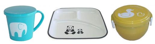 Their range of tableware evokes the colours of the 50s and features chic styled animal pictures. The range has four different colourways and is made up of cups, bento boxes and square plates. They are made from recycled PET resin plastic which is free from nasties such as BPA and PVC.