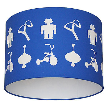 It’s so difficult to find decent lampshades for boys’ rooms – they’re always emblazoned with cartoon characters or cars… or both. Which is why I like this refreshingly retro one from from Jennifer vandenBrand in bright cobalt (the colour for spring 2012) featuring catapults, trikes, robots and spinning tops. I have to say I’m less keen on the other designs, but this one rocks. £39.99, Not on the High Street.