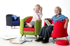 Oh I love these chairs!!! Perfect for our little ones to sit with us adults, they are so funky and retro in style. Specially created for kiddies, these chairs have metal frames, a wooden base and woollen covers over firm wadding. They are height adjustable and you can use them with or without the legs.