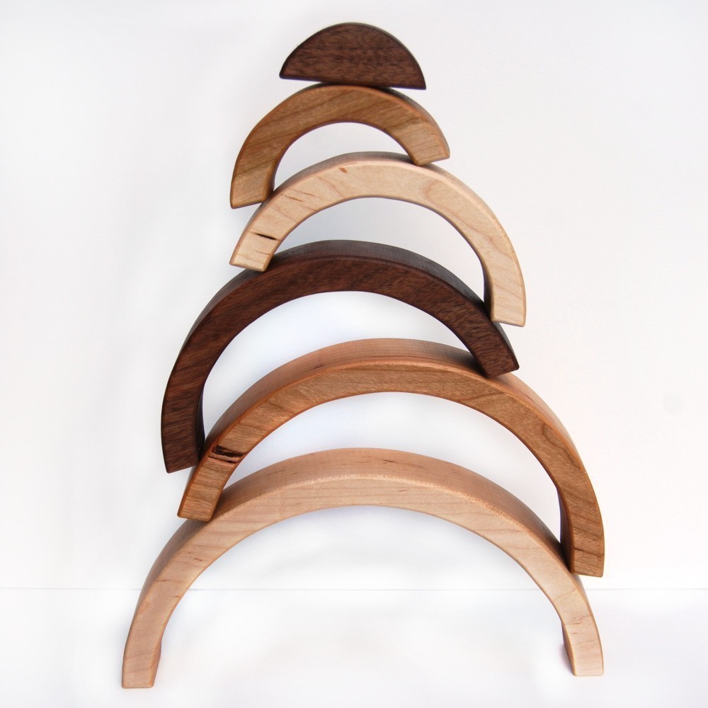 One of the loveliest presents Alfie received as a baby was a Grimm’s wooden stacking rainbow. He loved fitting the arcs together then and still enjoys playing with it now. I really love Little Sapling’s neutral take on the theme, the Brainbow, about £20 – a beautiful set of six arches in Maple, Cherry and Walnut woods, finished with beeswax and jojoba oil.