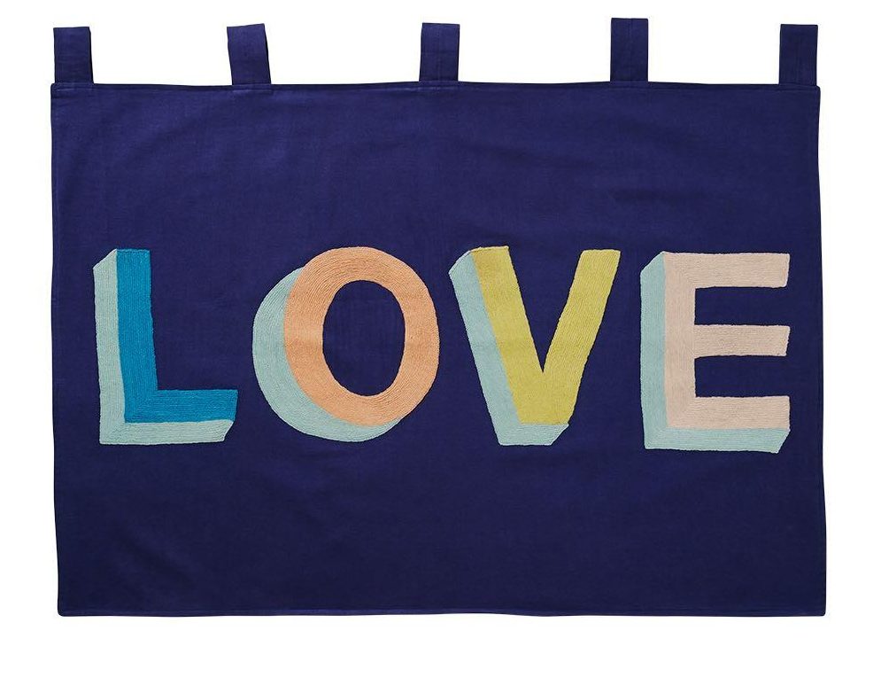 We are swooning over this Sage & Clare Love Wall Hanging spotted at Antipodream, it’s been hand embroidered on a midnight blue cotton canvas base in summery hues of chartreuse, blush, coral, turquoise and jade. Gorgeous for all ages. Costs £129 but you get £10 off your order if you sign up to their newsletter. Also check out their beautiful range of cushions, too.