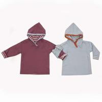 It is a reversible (one side plain the other stripey) hoodie. Made from double thickness organic cotton jersey with turn up cuffs and contrasting binding at the hood.