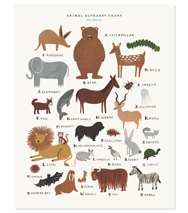 I just love Rifle Paper Co‘s paper products. A Florida-based studio run by husband-and-wife team Anna and Nathan Bond, it produces quirky cool stationary and prints featuring bears, bugs and blooms, all printed locally on eco paper. The insect series is particularly cool for a child’s room – how amazingly cute are this caterpillar and ladybird ($24 each)?