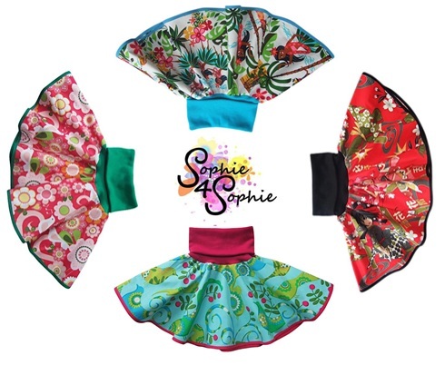 The Sophie4Sophie Circle Skirt is a gorgeous mix of funky fabric and comfort tailoring. The skirt is a generous full circle of fabric which not only looks amazing but makes it ideal for twirling. The waist band is a soft rib turnover designed to be comfortable to wear. The fold over waist also gives the garment longevity as it grows with your child – a Sophie4Sophie trademark feature. The bright fabrics are trimmed with coordinating rib and hem. I am really loving this new addition to the collection.