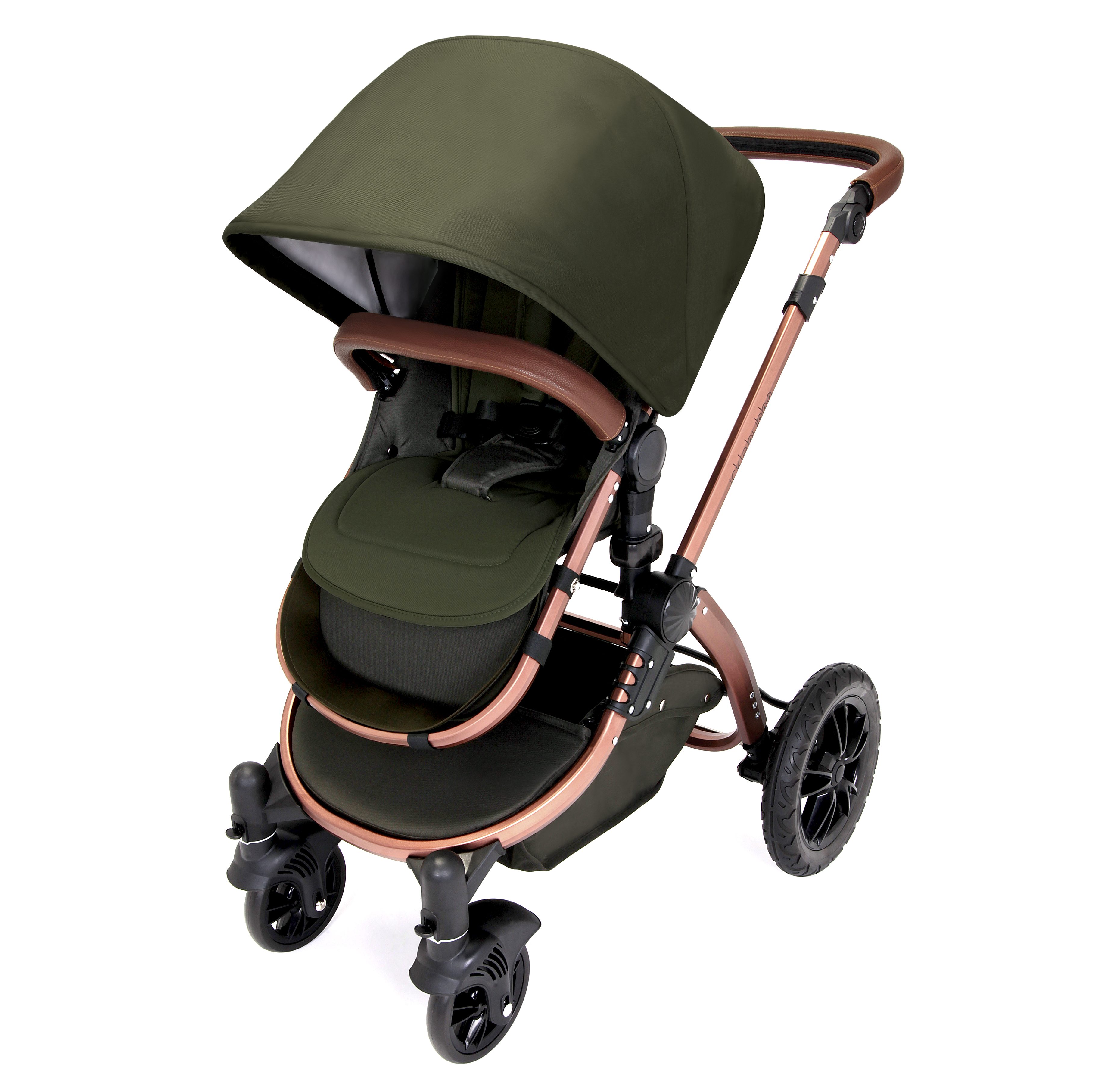 Inspired by nature and looking fabulous is the Woodland Bronze Stomp V4 Special Edition Travel System. They are loaded with special features, including a luxury quilted carrycot liner, a contrast lined double layer hood, as well as bronze chassis with matching leatherette handle and bumper bar.