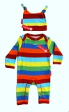 Coming from Toby Tiger you can choose either the multi coloured, blue and green stripe or blue and pale blue stripe sleepsuit and hat.
