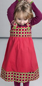 I don’t tend to dress ToddlerGeek in pink clothes but for this dress I would definitely make an exception. The Dino Dress is cuteness made wearable. It is a cotton pinafore style dress with a distinctive bold print at the top and on the hem. The hem also conceals two pockets one of which is home to a finger puppet. It is shown here with the speaking top (as above). £30 in sizes 2 – 4, 4 – 6 & 6 – 8 years.