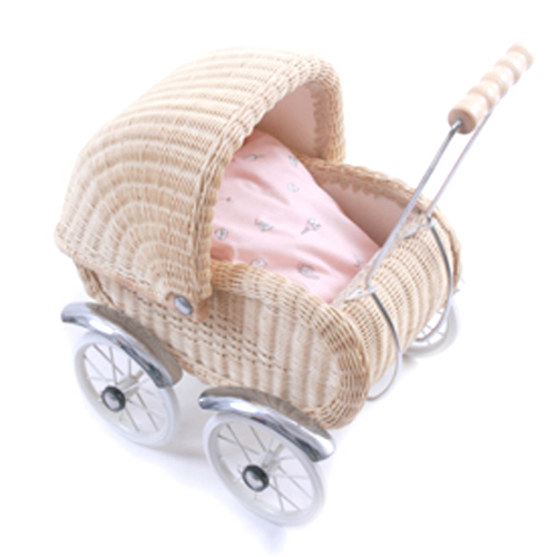 Made from wicker, this delightful looking little pram is just a perfect size for your princess. It includes beautiful bedding, of which there are three different colour swatches to choose from.